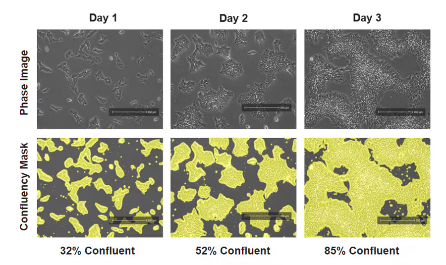 - автоматическое измерение степени конфлюэнтности в реальном времени;