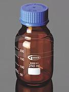 Бутыль 1000 мл, БС до 500 °C, GL45, с завинчивающейся ПП крышкой, круглая, светлое стекло, Glassco, Индия