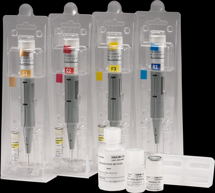 В комплект поставки входят 1 картридж, разделяющий буфер, буфер для образцов, ванночки, пробирки на 250 мкл в стрипе, выравнивающий маркер 20-1000 п.н.
