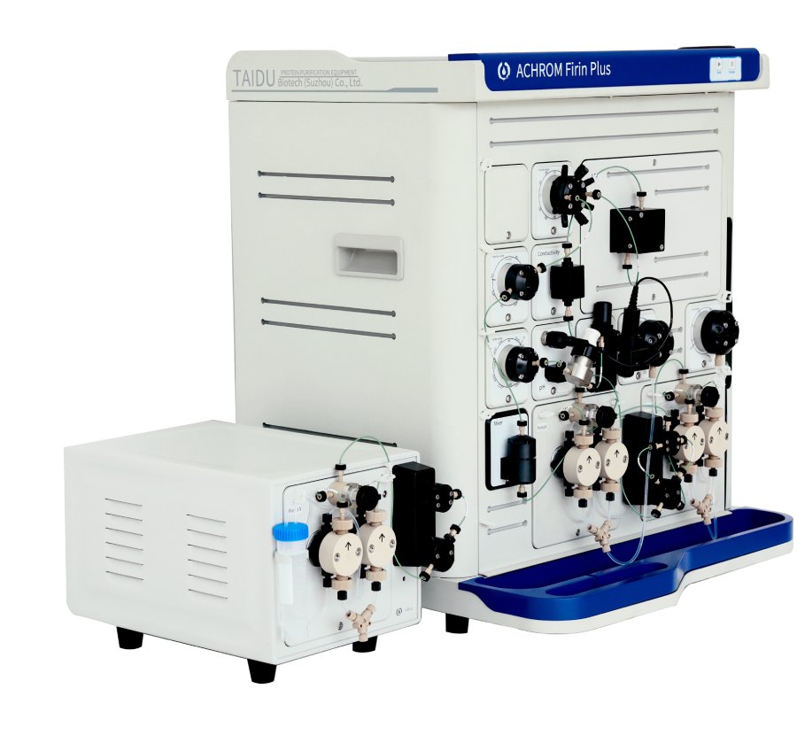 Хроматограф серии Firin Plus (аналог хроматографическая система AKTA pure 25) — продвинутая модульная хроматографическая система с широким спектром функций, необходимых как для исследовательской, так и для производственной очистки биомолекул. Хроматографическая система поддерживает нанесение до 8 образцов большого объема, использование сложных методов хроматографической очистки и подбор условий при тонких методах очистки белков.