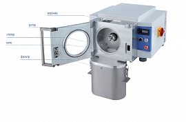 Измельчение и деагломерация в роторной ударной мельнице SR 300 происходит благодаря комбинации сил удара и сдвига. Материал поступает через воронку в центр размольной камеры, где он измельчается между ротором, ситом и измельчающими вставками. Как только размер частиц материала станет меньше, чем отверстия сита, он попадает в приемный сосуд. Быстродействующий дверной замок гарантирует быстрый доступ к размольной камере для удобной чистки. Благодаря тормозу двигателя (время для остановки 0,5 с), защитному выключателю, защитам от выброса материала и несанкционированного доступа к размольной камере, SR 300 гарантирует высочайшую степень безопасности работы.
