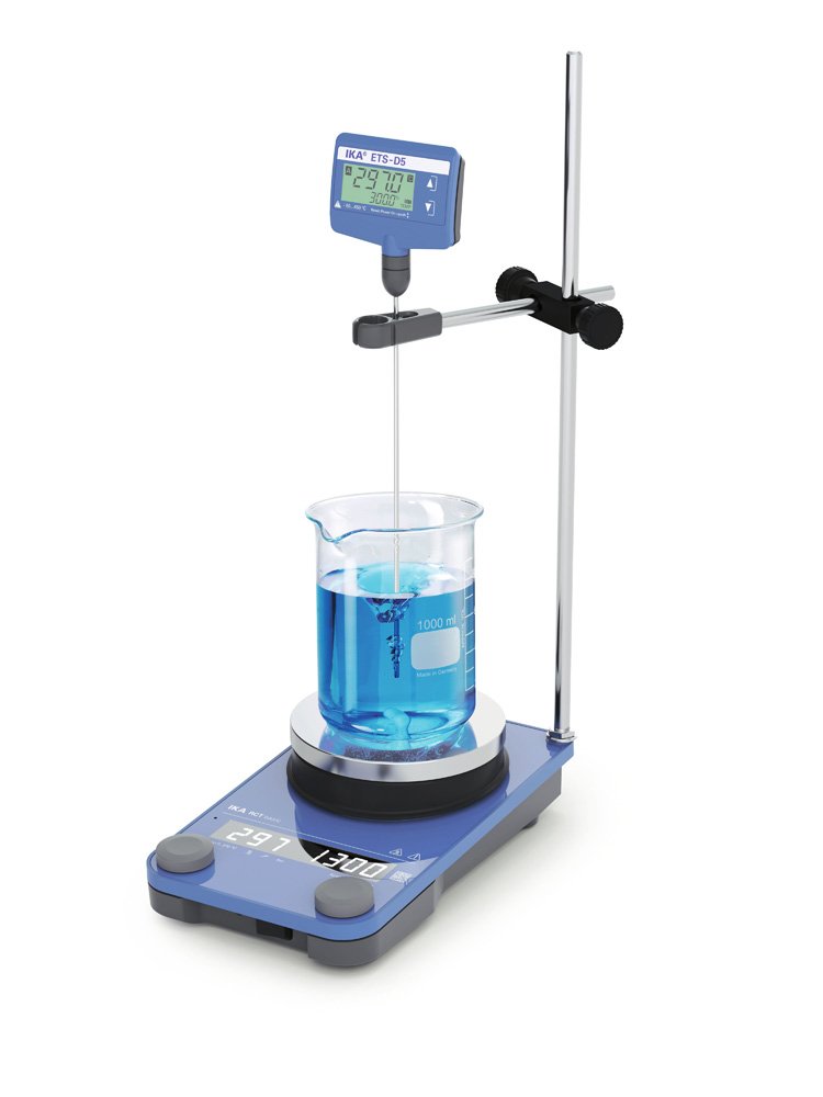 Магнитная мешалка с нагревом RT 5 имеет плавную регулировку температуры нагрева до 120 °C, скорость остается постоянной даже при изменении нагрузки, настраиваемый реверсивный режим работы, а также удобную сенсорную клавиатуру. Пригодна для непрерывной работы.