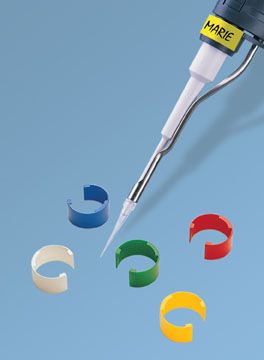 Яркие цветные зажимы для идентификации и персонализации пипеток, сделаны из полиацеталя, для надписывания несмываемыми чернилами, легко закрепляются на пипетке.