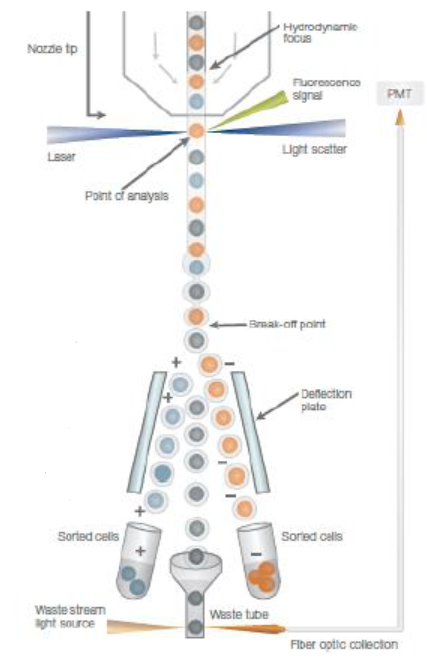 • клетки сортируются в растворе водной микросреды для максимального сохранения метаболической активности одиночных клеток;