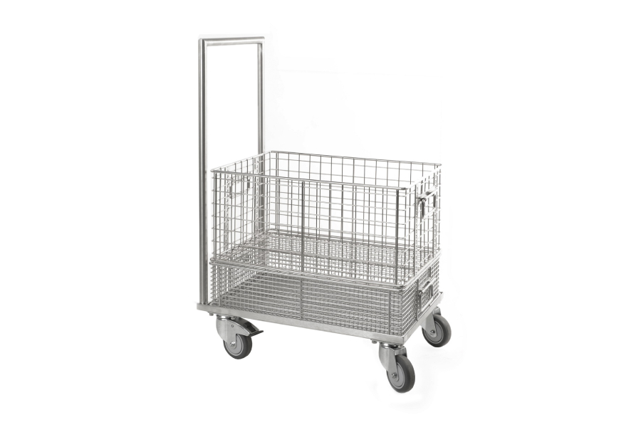 - Изготавливаются из нержавеющей стали — материал один из наиболее гигиеничных, тележки просты в уходе, легко дезинфицируются;