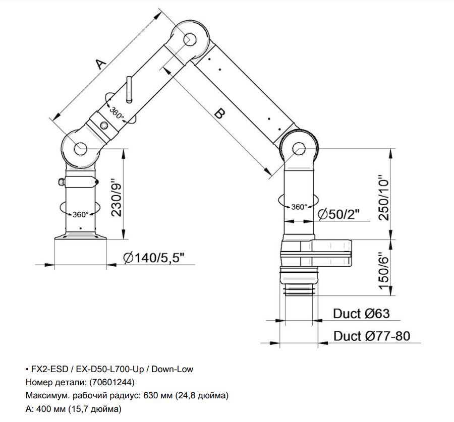 Характеристики вытяжного рукава FX2-ESD/EX-D50-L700-Up/Down-Low