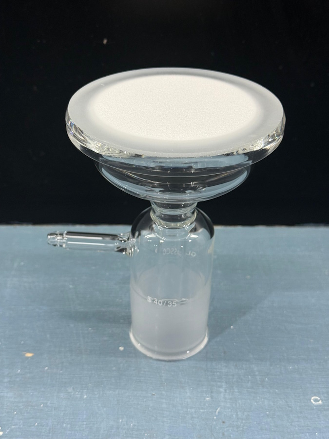 Основание для держателя фильтров с диаметром 90 мм из боросиликатного стекла с боковым соединением для вакуума и фриттованной стеклянной подложкой.