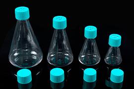 Стерильные одноразовые колбы с широким горлышком и резьбой для пробки.