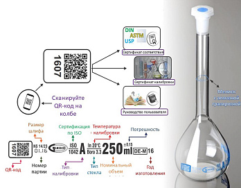 Также такая маркировка может указывать на то, что колба соответствует определённым стандартам или спецификациям, что делает её надежной для научных исследований и лабораторных работ.