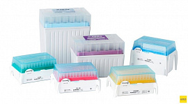 Стерильные наконечники с фильтром, в штативах или в кассетах — по запросу.