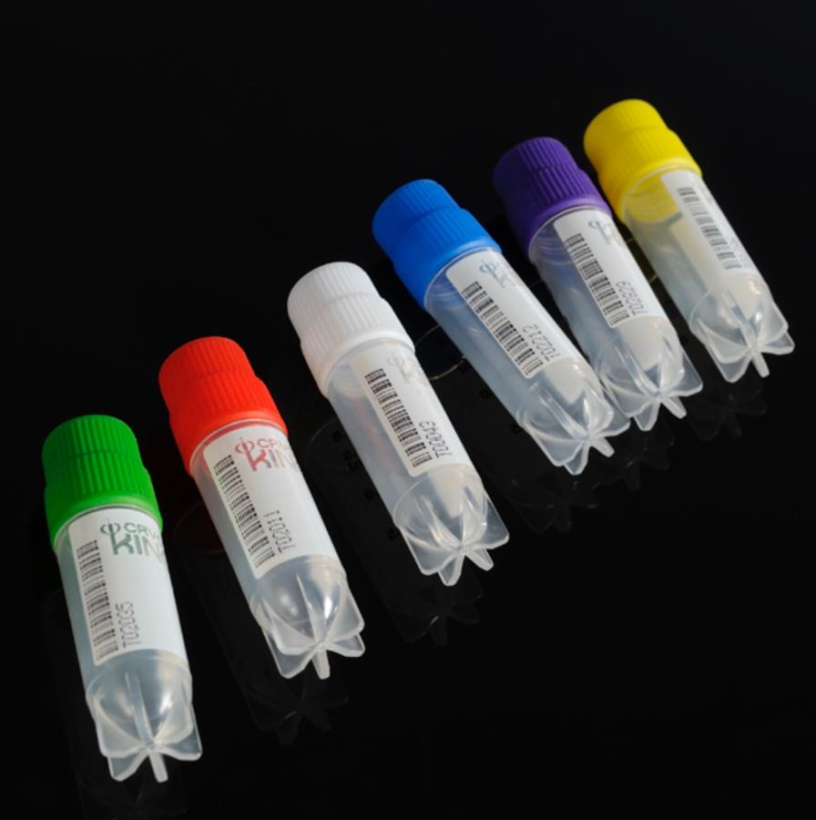 Криопробирки 2 мл, красные крышки, ПП, высота 39,7 мм, конические, с юбкой, внешняя резьба, стерильные, матовое поле для маркировки, бесцветные, 25 шт./уп., 40 уп./кор., Biologix, Китай