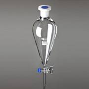 Воронка делительная, цилиндрическая, шлиф 29/32, запорный клапан из стекла, с раструбом и конусом, пробка ПП, 1 шт./уп., Glassco, Индия