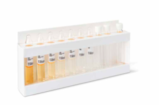 Стандарты цветности — B, BY, Y, GY и R марки Certipur доступны в готовых к использованию наборах. Для проведения анализа образец наливают в пустую кювету из набора и помещают рядом с растворами сравнения цветности на штатив.