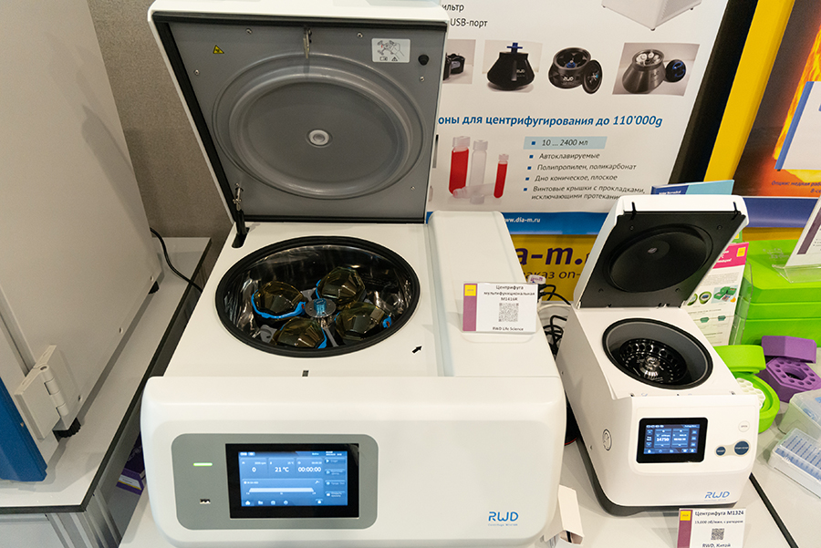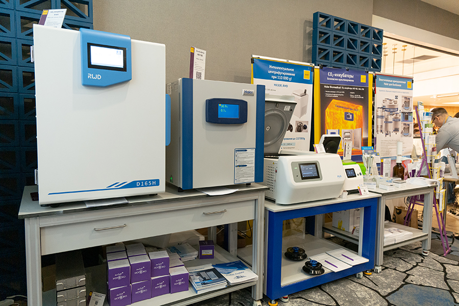 Посетители смогли оценить удобство эксплуатации мультифункциональной центрифуги M1416R и микроцентрифуги M1324 производителя RWD (Китай), которые теперь оснащены русскоязычным интерфейсом. На выставке была предоставлена уникальная возможность сравнить СО₂-инкубаторы с функцией высокотемпературной стерилизации (до +1800 °С) двух ведущих китайских производителей RWD и Haier Biomedical. Мы продемонстрировали широчайшее портфолио принтеров Brady и этикеток для различных применений. Большой интерес вызвало оборудование производителя DLab, который представил различные мешалки, твердотельные термостаты, диспенсеры, титраторы, автоматические дозаторы. Наши гости также ознакомились с возможностью хранения образцов при пониженной температуре: в системах криохранения Haier Biomedical и низкотемпературном морозильнике Midea.