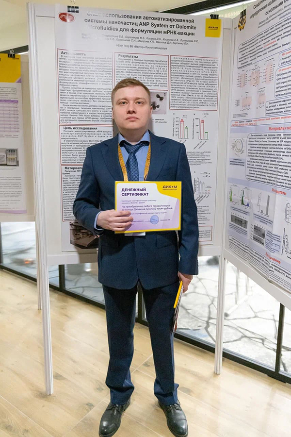 В секции «Белкового и клеточного анализа» ведущие эксперты разбирали ключевые и перспективные решения, применимые для различных сфер клеточной и молекулярной биологии. Рассказывали о новинках приборов для исследований in vivo; особенности использования микрофлюидных методик для разработки препаратов «адресной доставки». Специалист из РХТУ им. Д.И. Менделеева Анна Поливанова рассказала о технологии создания препаратов из серии противоопухолевых лекарств при помощи производных гиалуроновой кислоты. Руководитель данного направления Диаэм Сергей Ирхин сделал доклад о специфике микрофлюидной платформы NanoGenerator Flex-S Plus, которую можно использовать для поиска новых мРНК-вакцин и формирования библиотек нанолипосомных лекарственных форм.