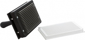С данной матричной плашкой может быть использован репликатор с подвижными пинами для 96-ти луночных планшет, обеспечивающий полный перенос из планшета за два подхода.