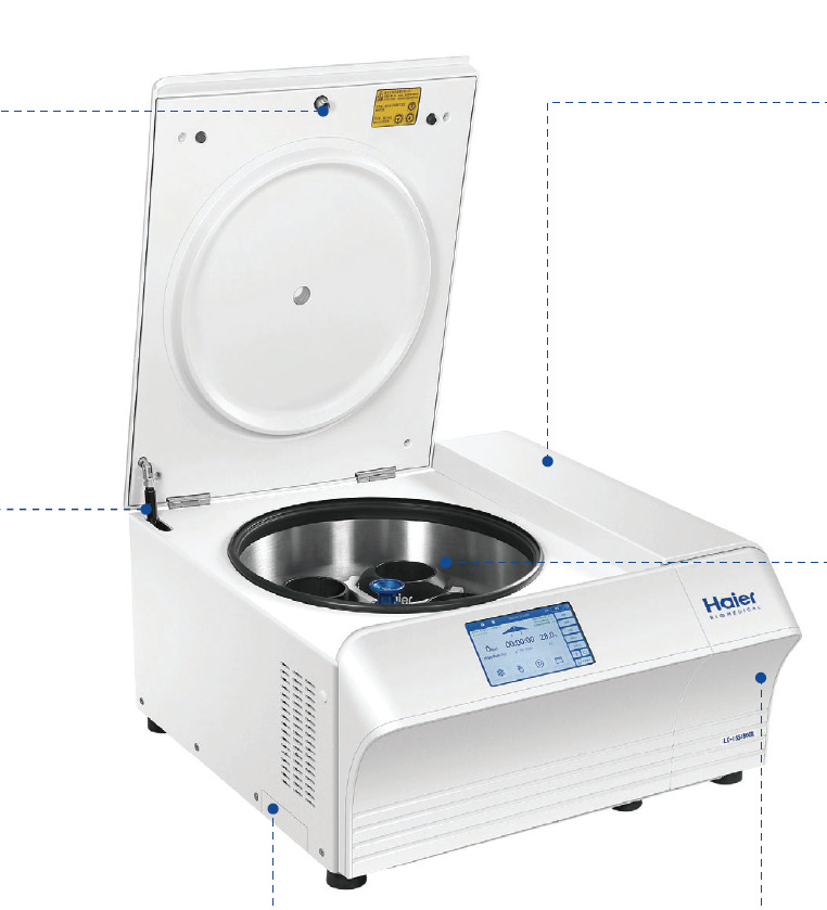 Низкая высота центрифуги (высота с открытой крышкой всего 85 см) позволяет облегчить процедуру загрузки-разгрузки центрифуги. Крышка центрифуги закрывается легким нажатием. Существенно повышают экономичность центрифуги функция Fast Temp pro, которая позволяет запустить предварительное охлаждение центрифуги в заранее установленные дату и время, а также функция Eco (автоматическое отключение питания при 8-часовом перерыве в работе).